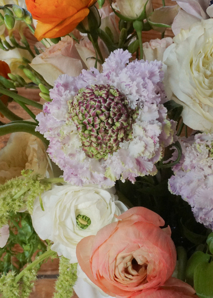 A beautiful collection of anemones, ranunculus, scabiosa, freesia, roses, smilax, amaranth and more, our Country Charm Flower Box allows you to assemble a summery, timeless arrangement. The box includes stems of lavender, white, coral, orange and green hues, perfect for any and all of your summertime occasions.